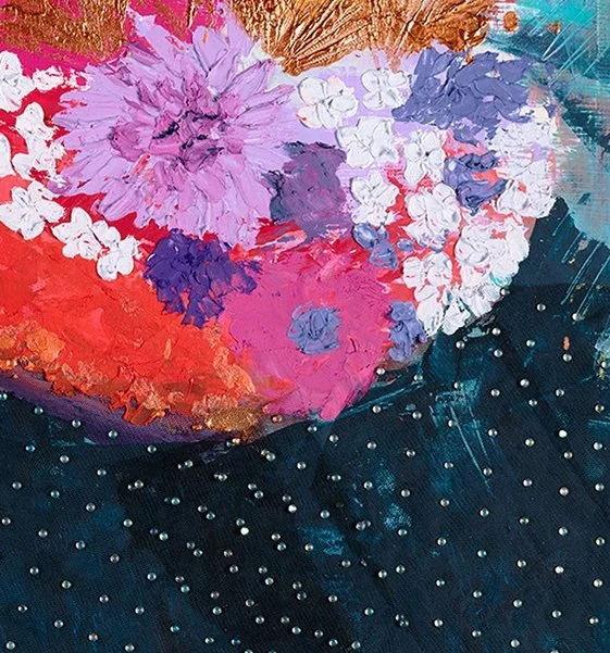 The Dreamweaver prints celebrate identity possibility and the dreams we carry with us through every season of life. Each print highlights the layered textures and floral details that symbolize aspiration and inner strength. Produced on Hahnemühle Photo Rag Metallic these editions bring out the depth and color of the originals.